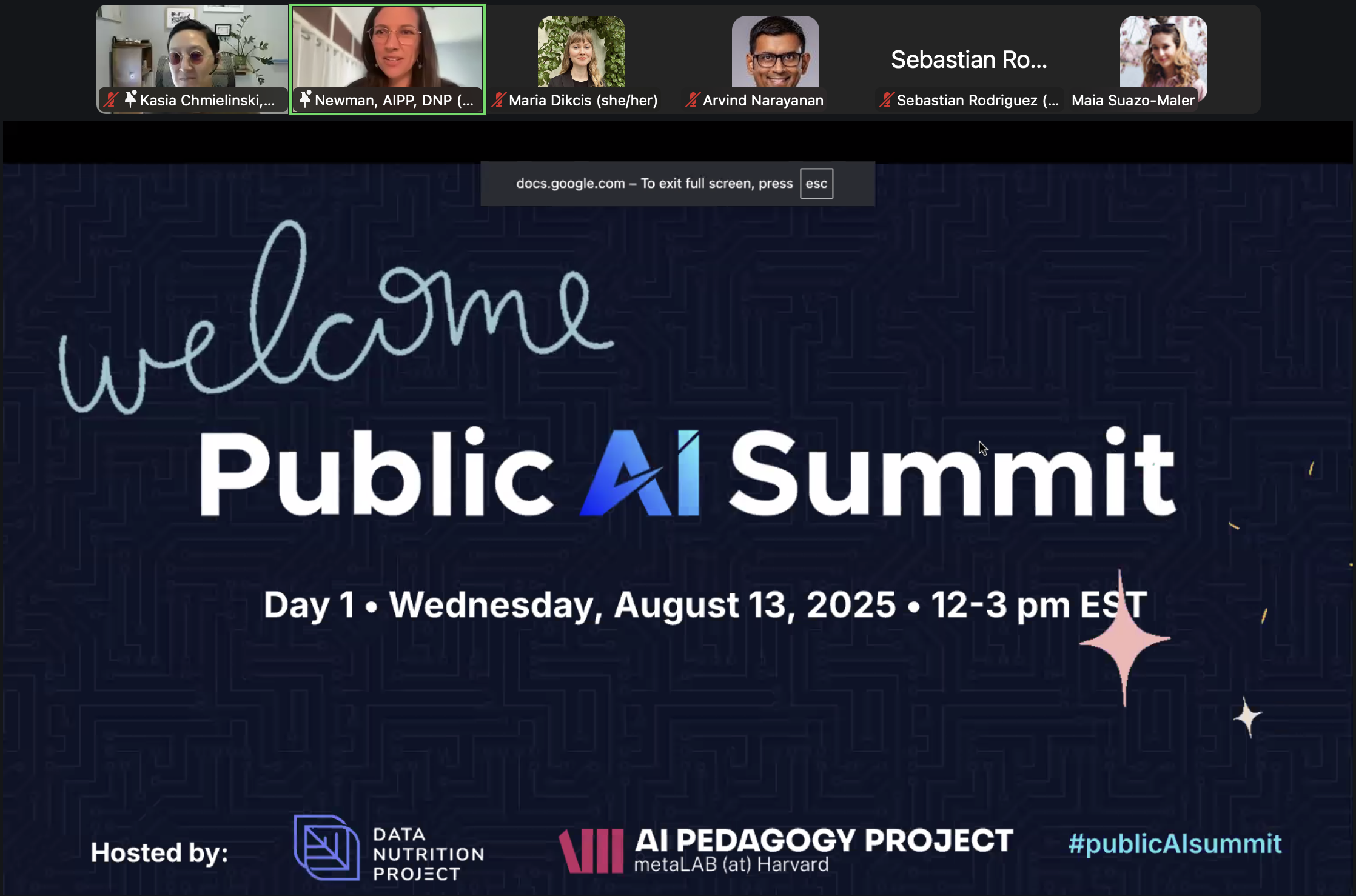 The Public AI Summit was a two-day virtual event in August 2025 for the general public to hear from leading experts about the latest AI developments, gain a clearer understanding of what these changes mean, and learn how we can leverage these tools in our everyday lives. This event was free, open to all, and designed to make AI approachable and relevant for diverse audiences.